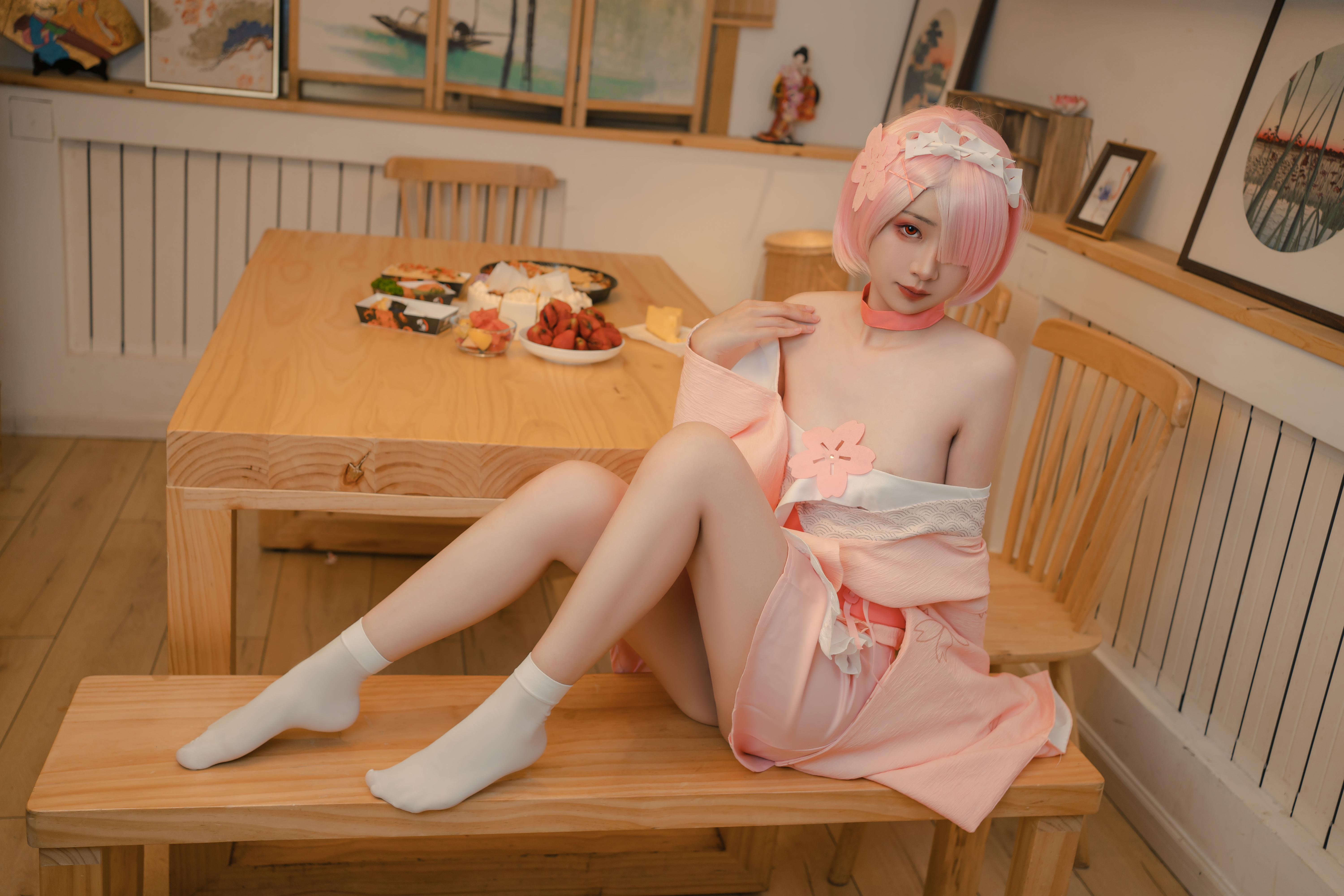 高端ACG业界女神爆机少女▌喵小吉&金鱼▌双模巨献《从零开始的女体盛宴》超色情舔乳磨穴