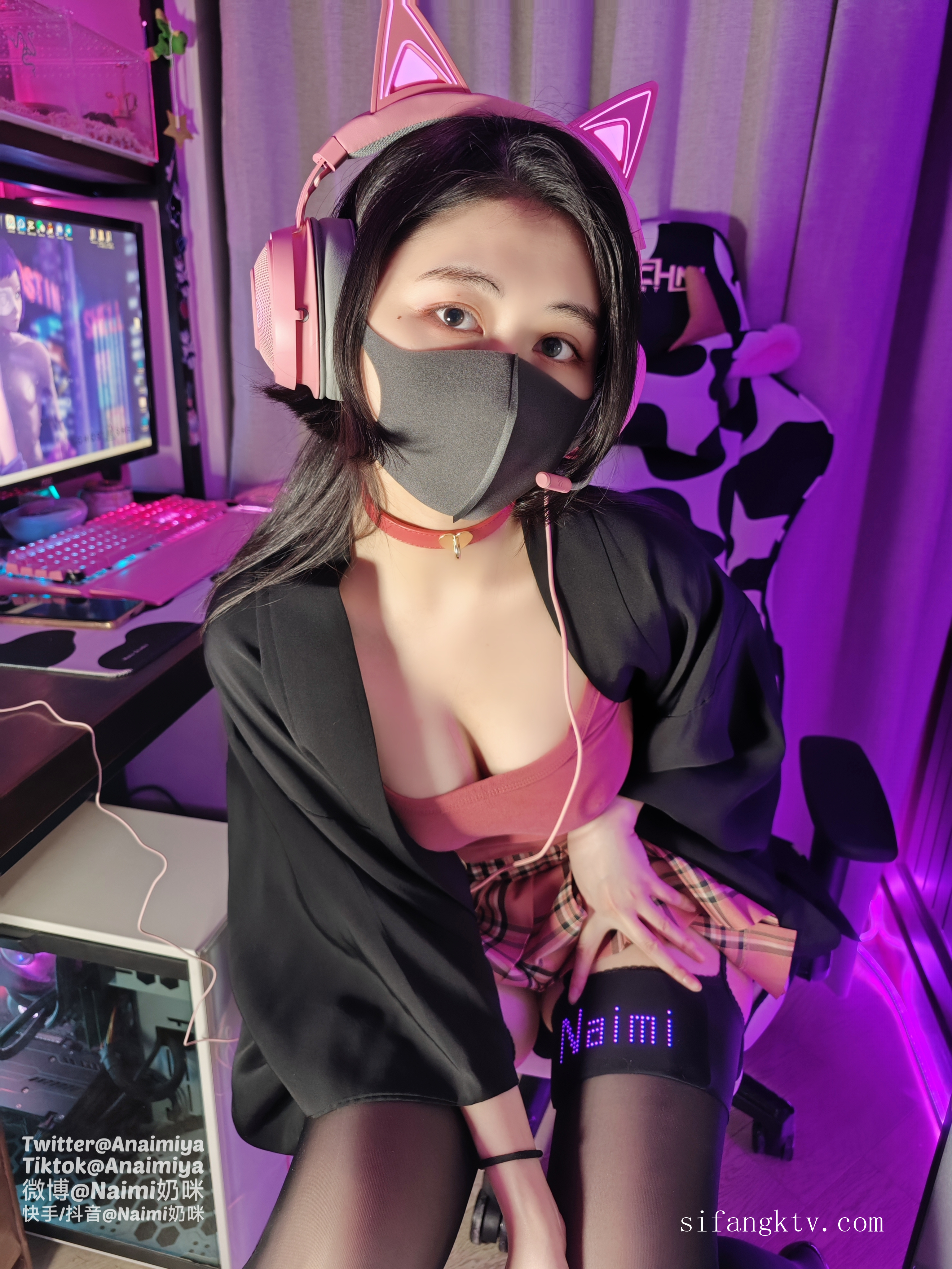 抖音網紅反差母狗『奶咪』十月唯性新作-賽博朋克電競少女 耳機線插BB里聽音樂 高清