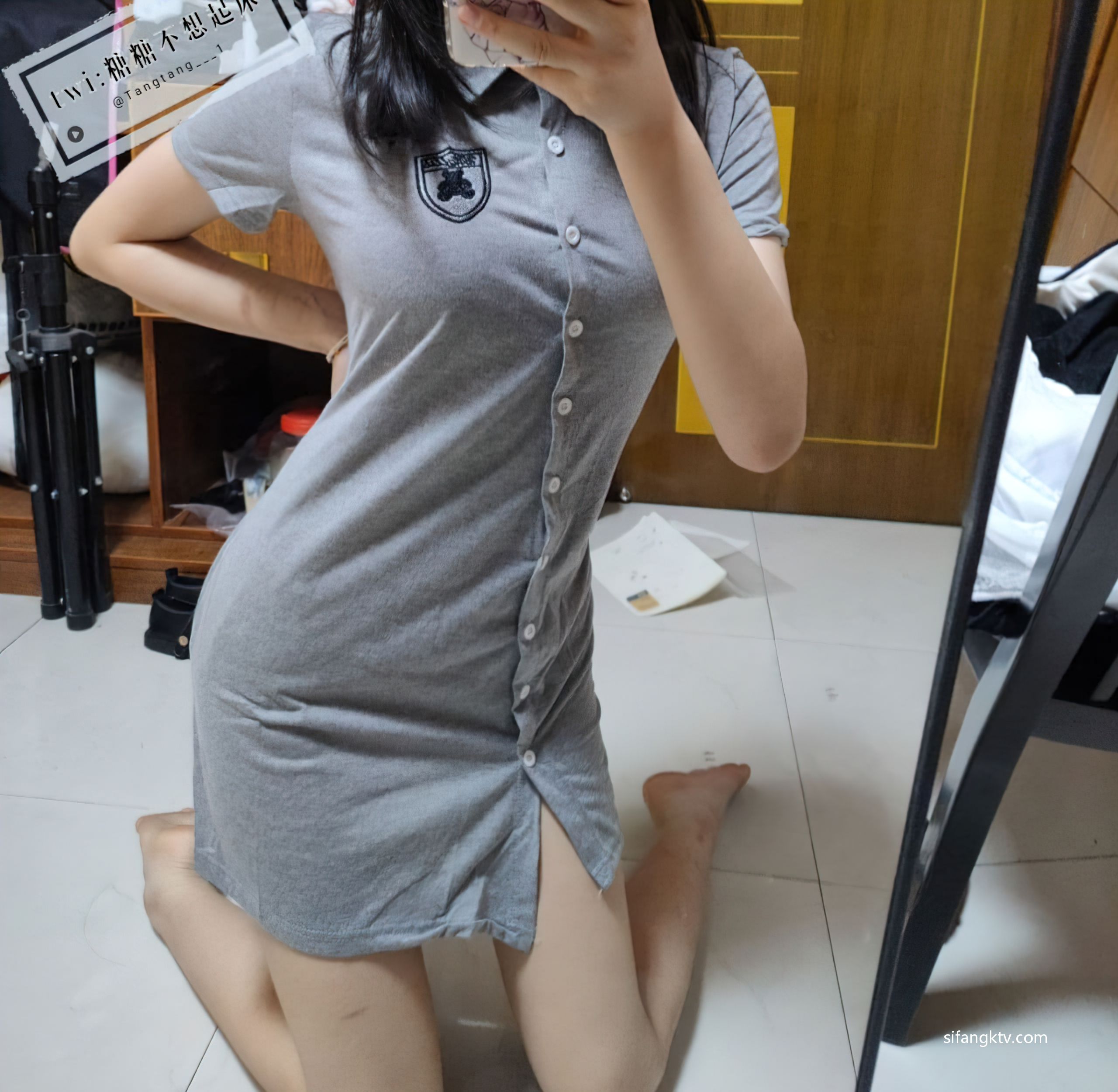 描述: 超极品双马尾萌妹『萝莉糖糖不想起床』失禁潮吹 完美巨乳 粉嫩鲍鱼 超嫩白 高清灰色连衣裙