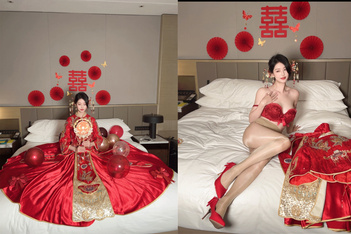 網紅辛尤里新作,新娘穿著婚紗偷情泄密,成為我的精盆!