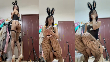 【行簡】網襪兔女郎+黑白雙絲跳蛋自慰_1